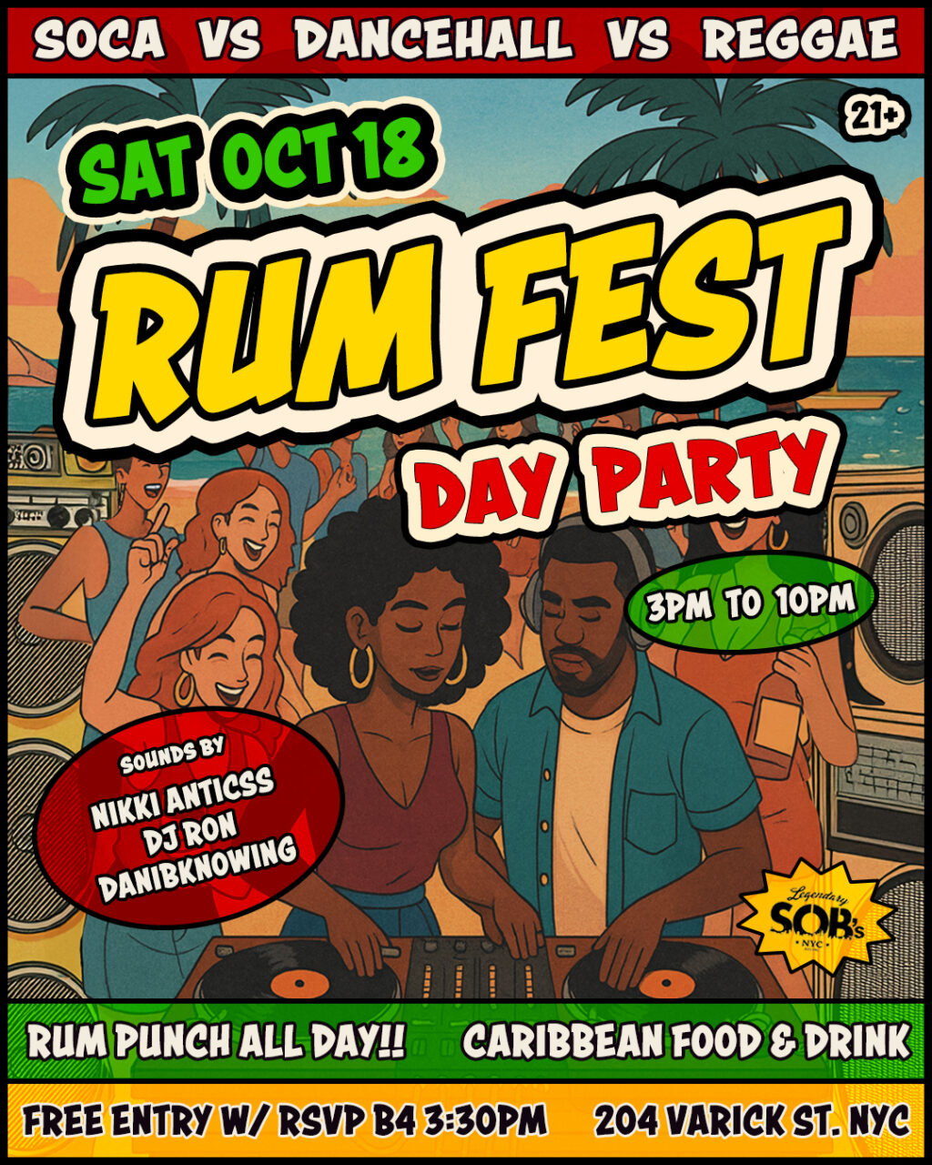 SOB’s Presents: Soca vs Dancehall vs Reggae Day Party – RUM FEST EDITION!!