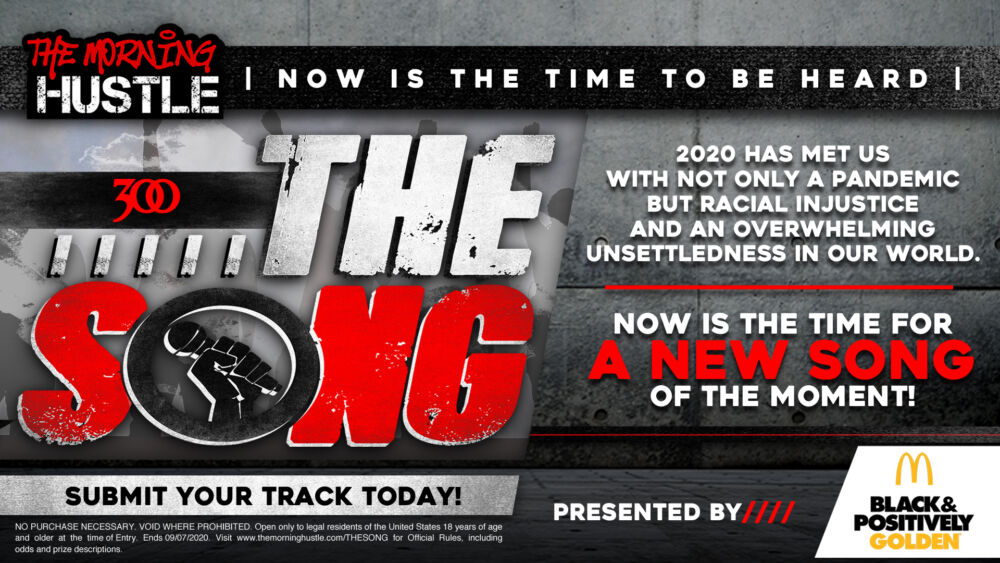 As you’ve probably heard by now: The Morning Hustle and 300 Entertainment are looking for “The Song.” A fight song and a new song of hope. The soundtrack for right now. We’re asking listeners to submit a fitting track for a chance to win $5,000 and a distribution deal of their song on all streaming platforms.